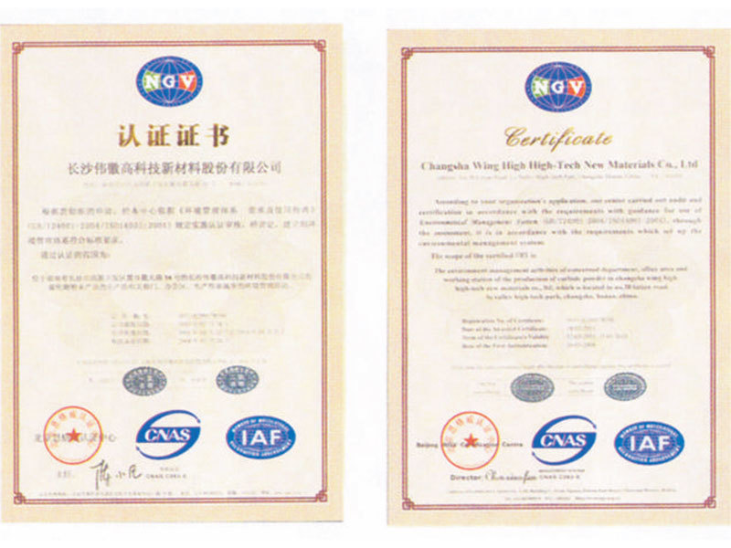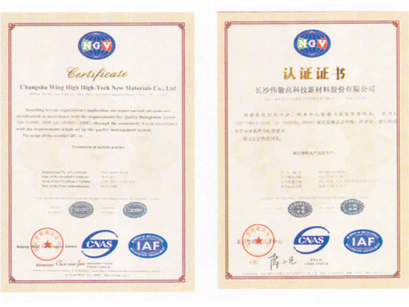 公司拥有发明专利16项,实用新型专利4项,其中“金属碳化物微细粉末的制备工艺”专利获得中国专利优秀奖。公司通过了ISO9001:2015质量体系认证和ISO14001:2015环境体系认证; 公司技术中心为省级企业技术中心;公司分析检测中心通过了中国合格评定国家认可委员会(CNAS )组织的专家评审,获得国家认可实验室证书。